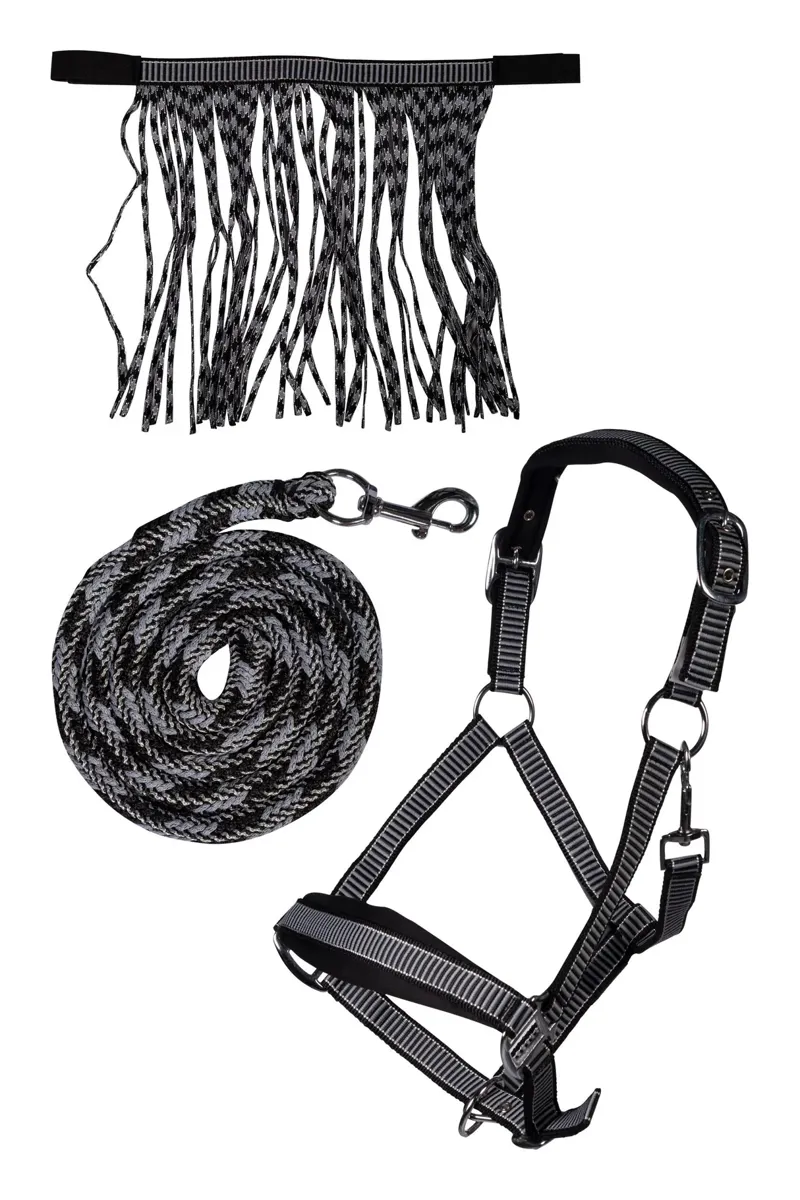 HKM Headcollar and Lead Rope Set with Fly Fringe Black